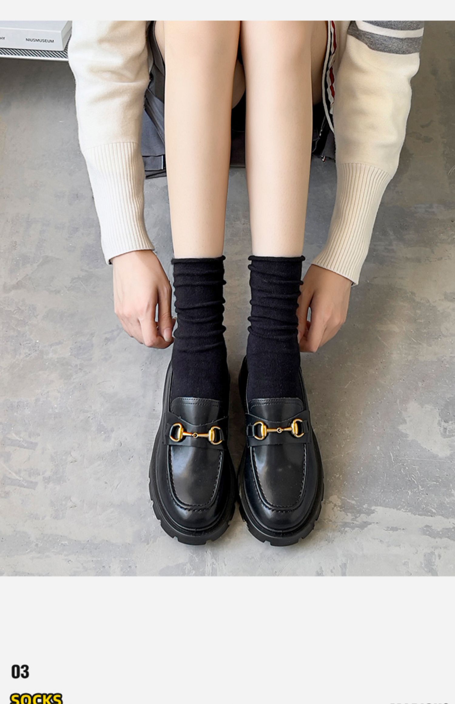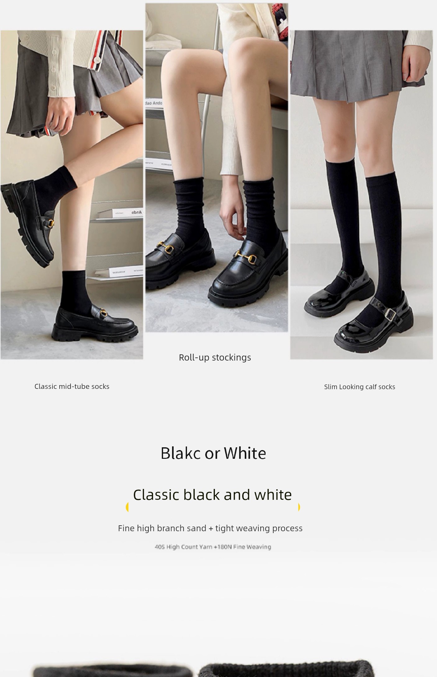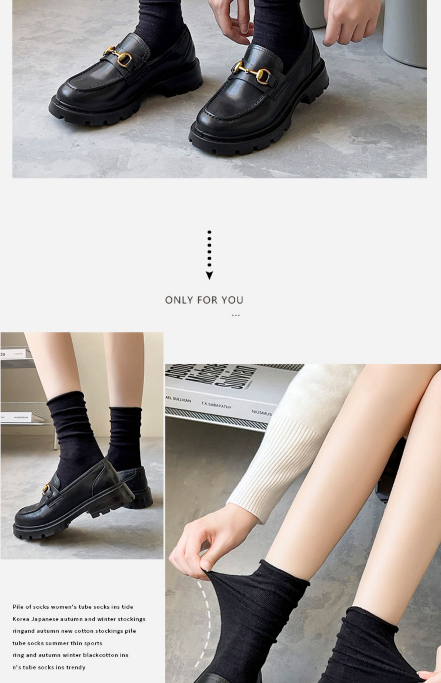 Black Socks Knee Socks Female Loafers Autumn and Winter Bunching Socks Women's Matching Leather Shoes Calf Socks Knee High Long