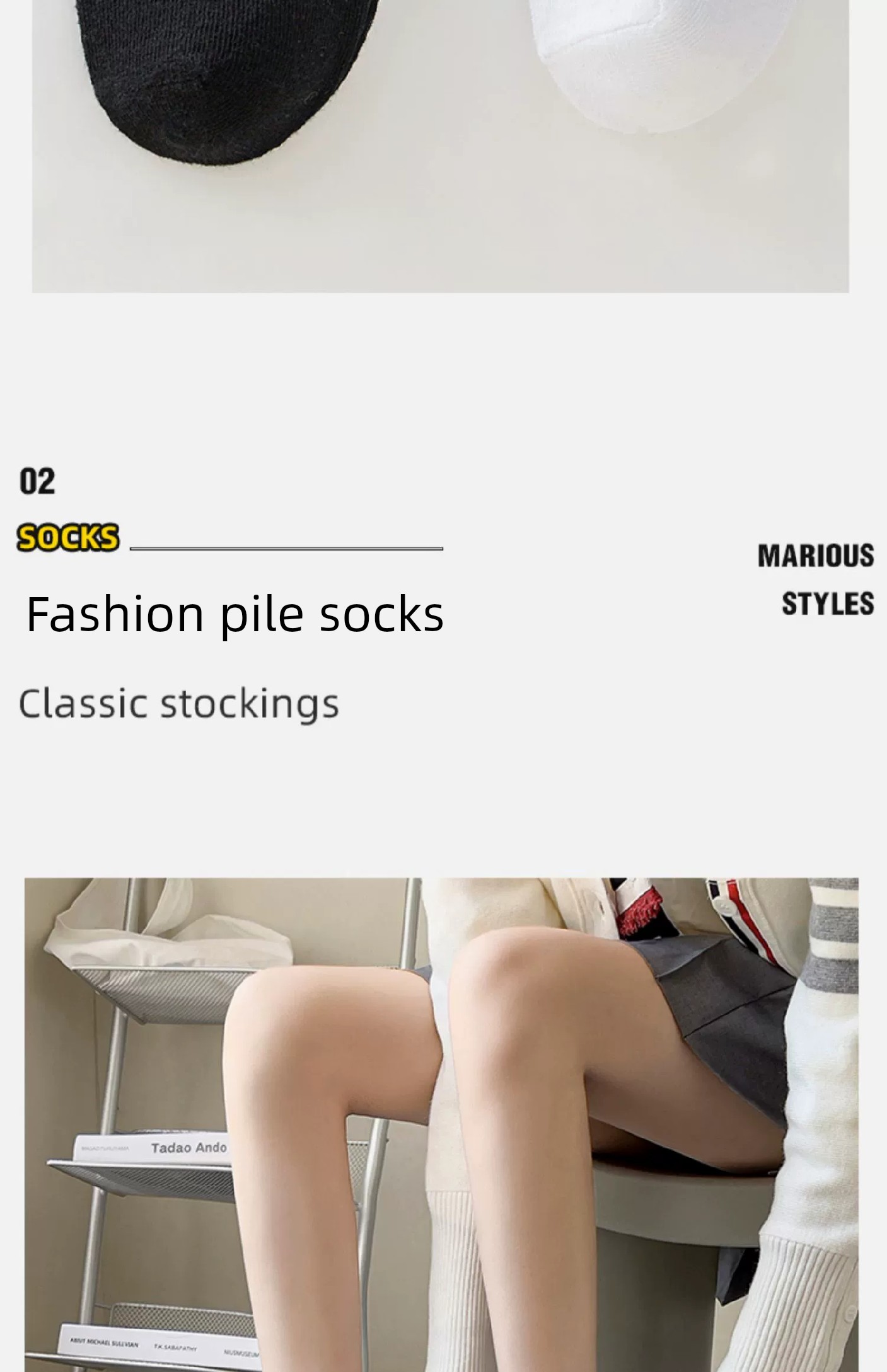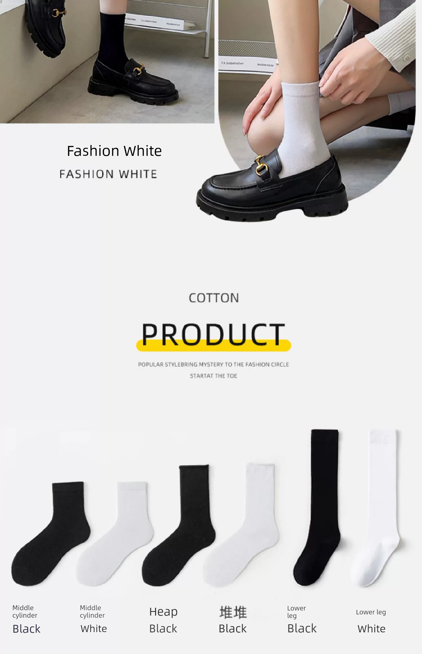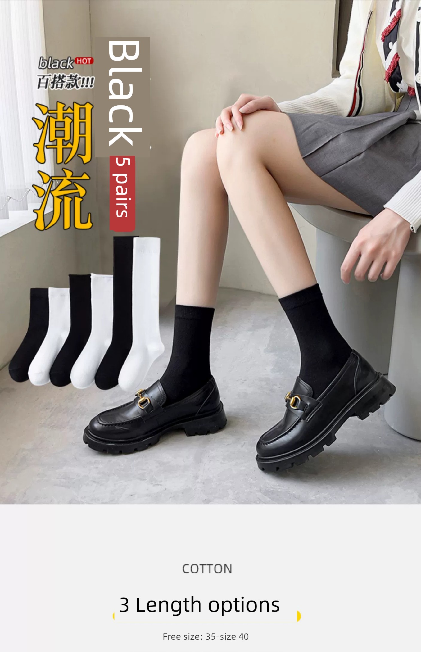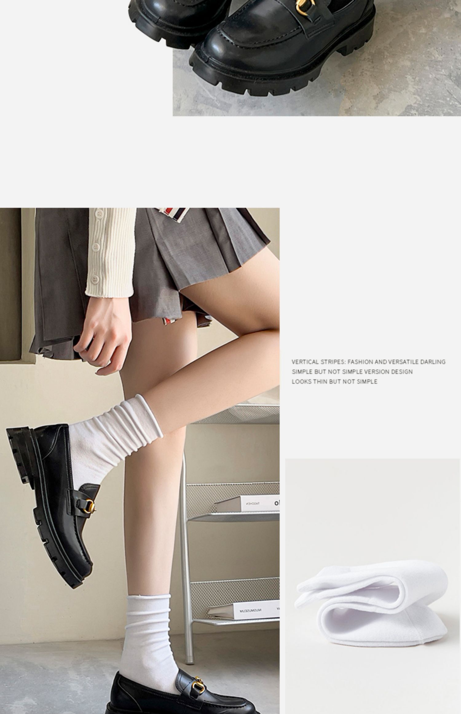 Black Socks Knee Socks Female Loafers Autumn and Winter Bunching Socks Women's Matching Leather Shoes Calf Socks Knee High Long